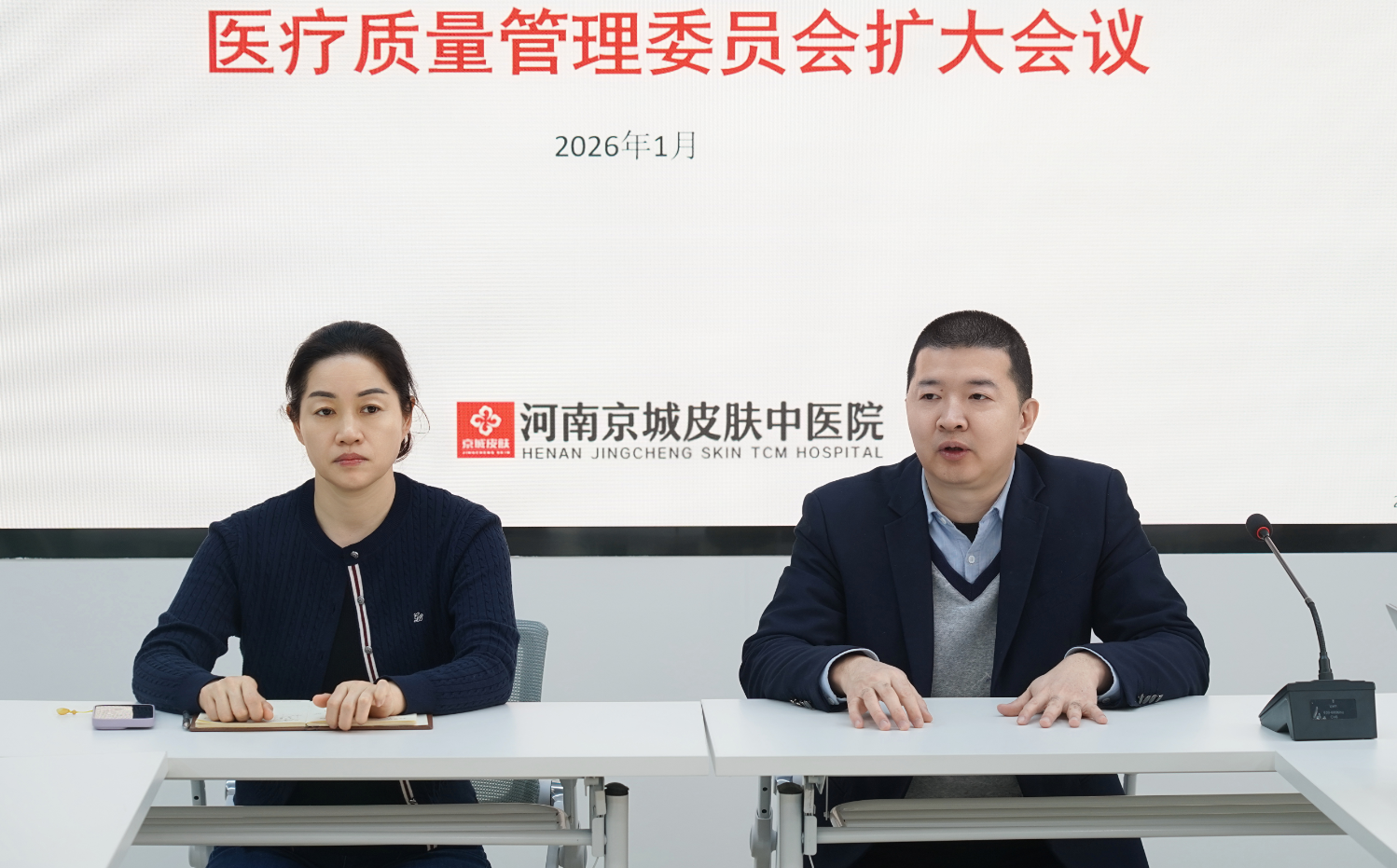 随后,医务部主任王景萍作专项工作报告,总结上半年质控工作亮点与成效,同时明确了后续工作方向。报告指出,下一阶段将重点推进《医疗质量安全专项整治》行动,严格落实《京城皮肤医院集团2026年质量与安全工作要点》,健全“责任到人、限时整改、闭环管理”的质控机制,持续提升医疗服务规范化水平。